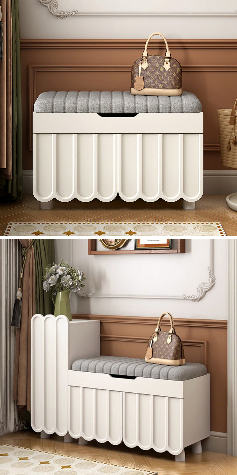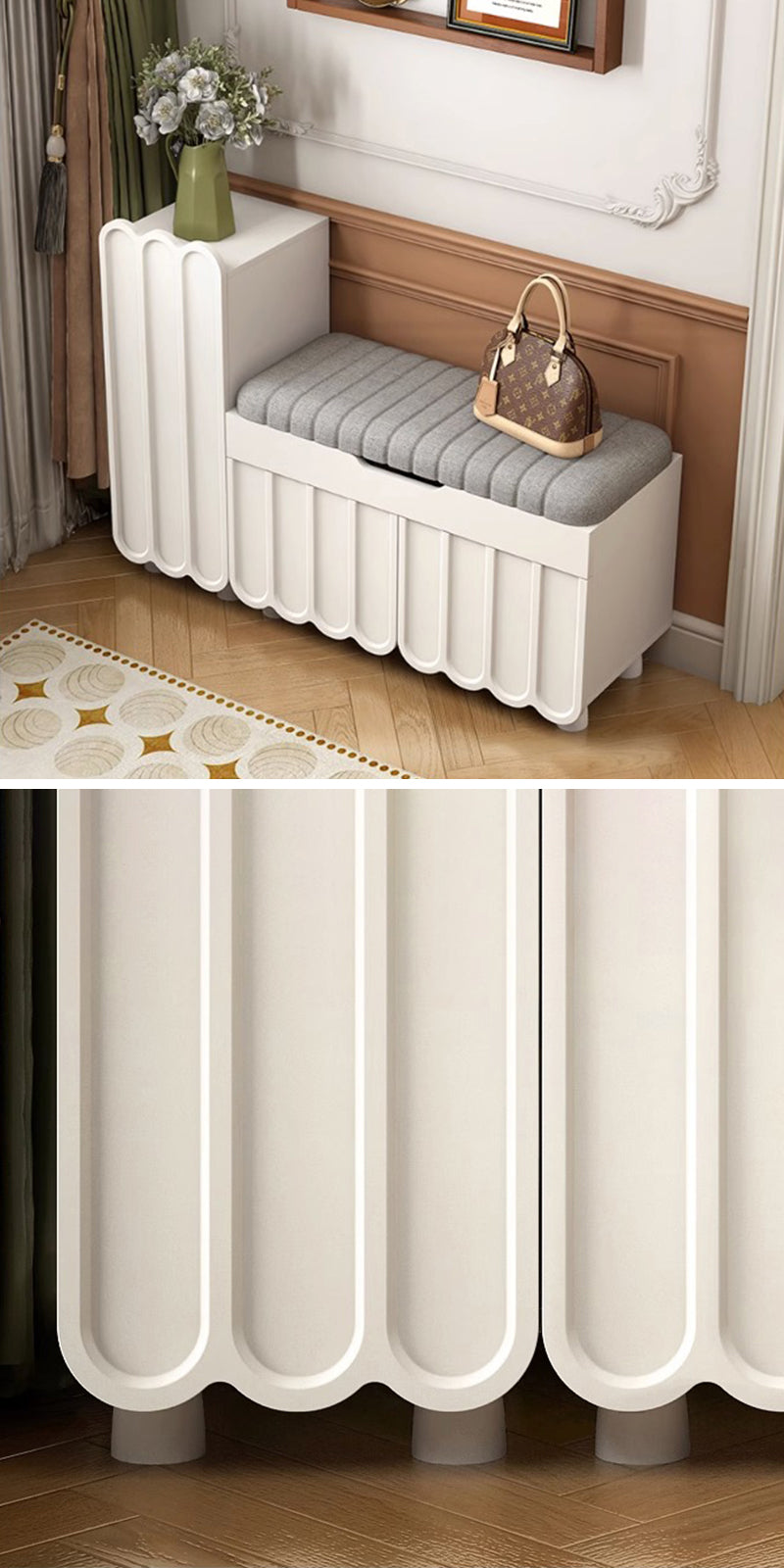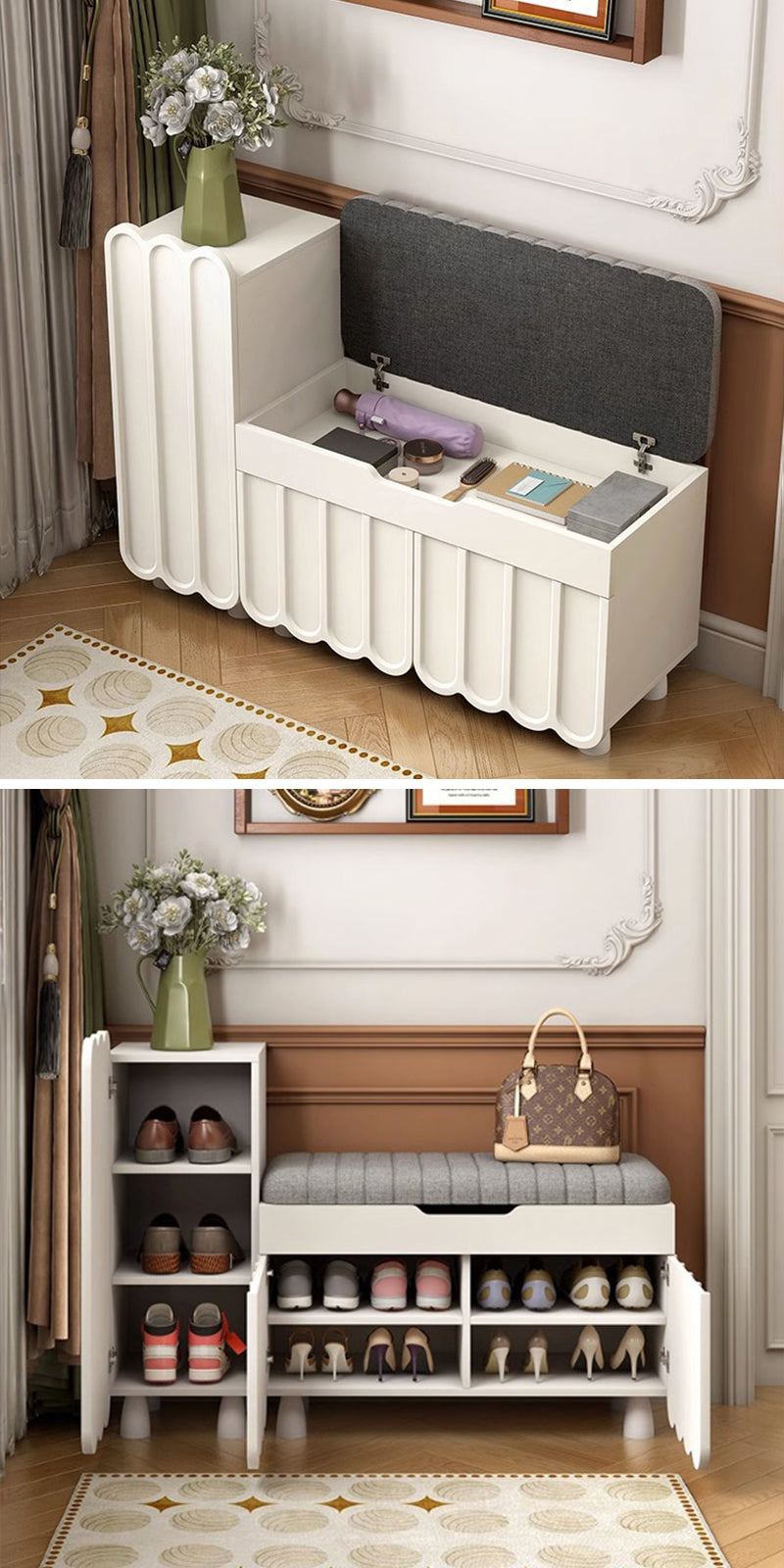 玄関で靴を収納しながら、履く準備をする場所として便利であり、リビングルームや寝室で座ってくつろぐためにも使用できます。