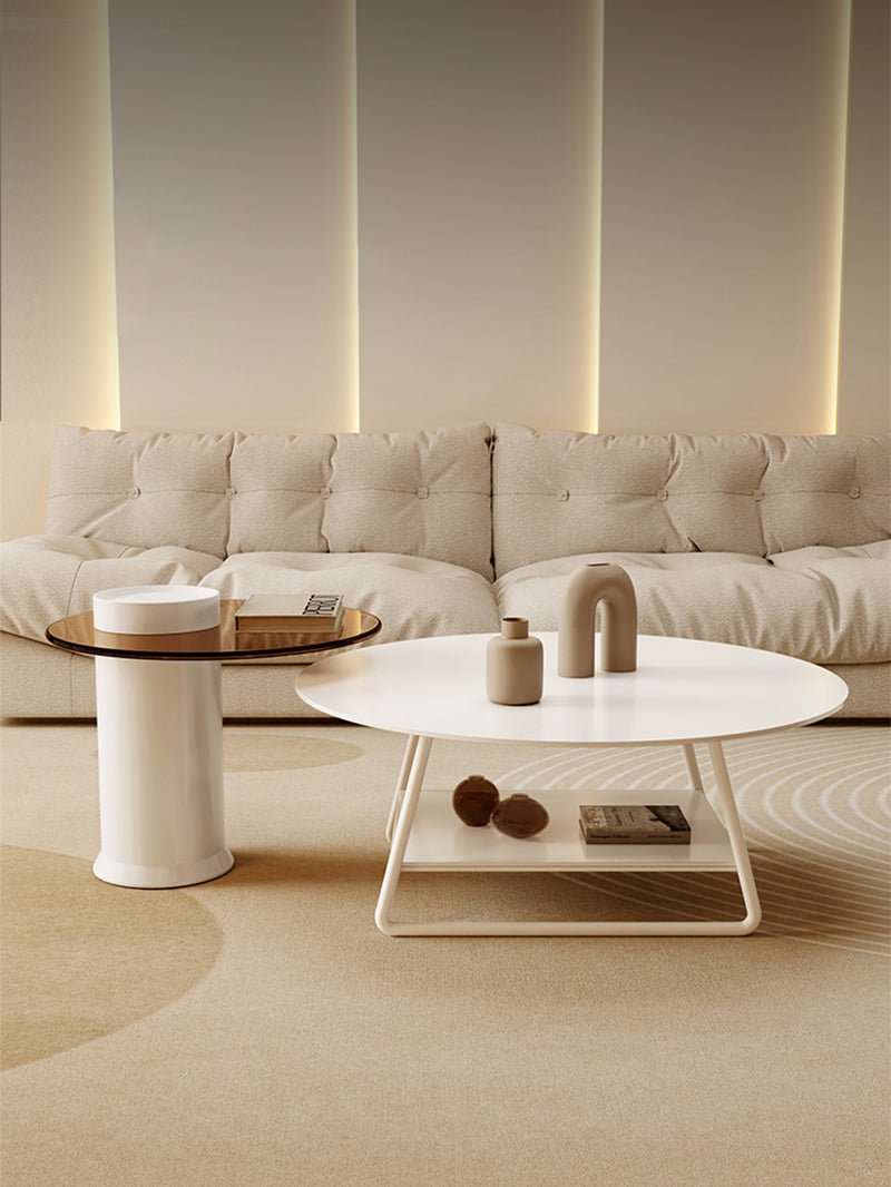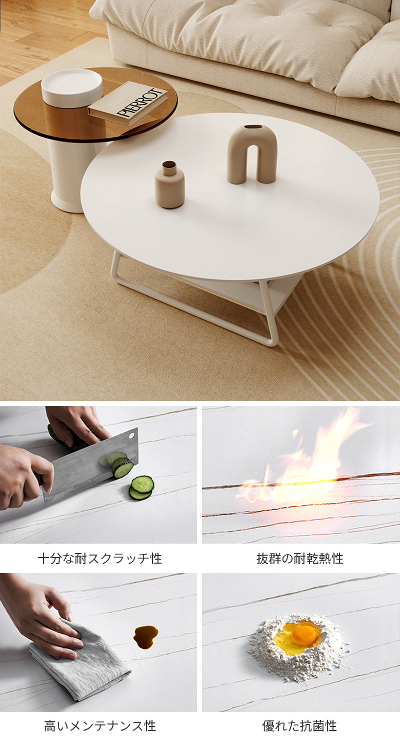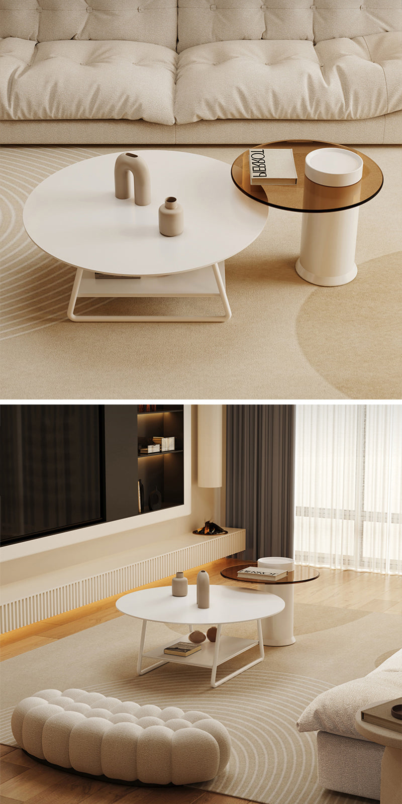 ローテーブルセットは、2つのテーブルからなり、自由に組み合わせや配置を変更でき、部屋のレイアウトを柔軟に調整できます。