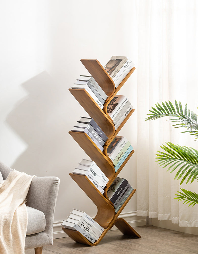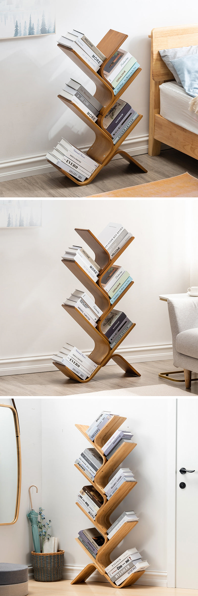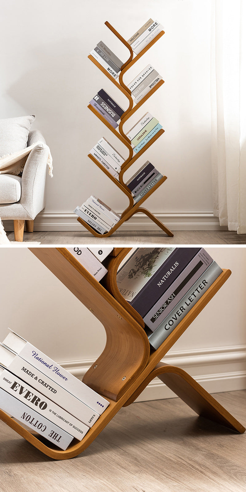 本棚の曲がった木の形状とハート形の棚が、部屋にアート感をもたら、部屋に活気と温かみを加えることができます。