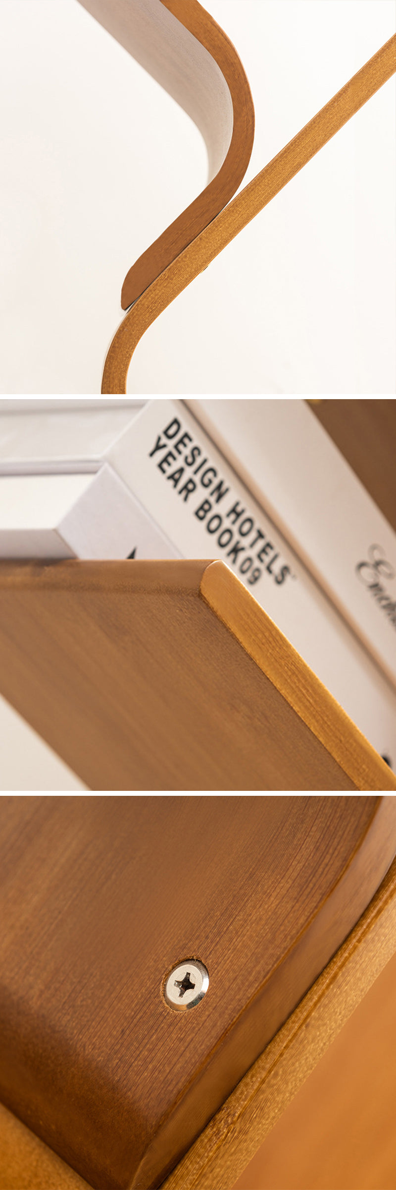 斜めな収納スペース、曲線的なデザイン、環境にやさしい材料を組み合わせ、機能性と美しさを兼ね備えた家具です。
