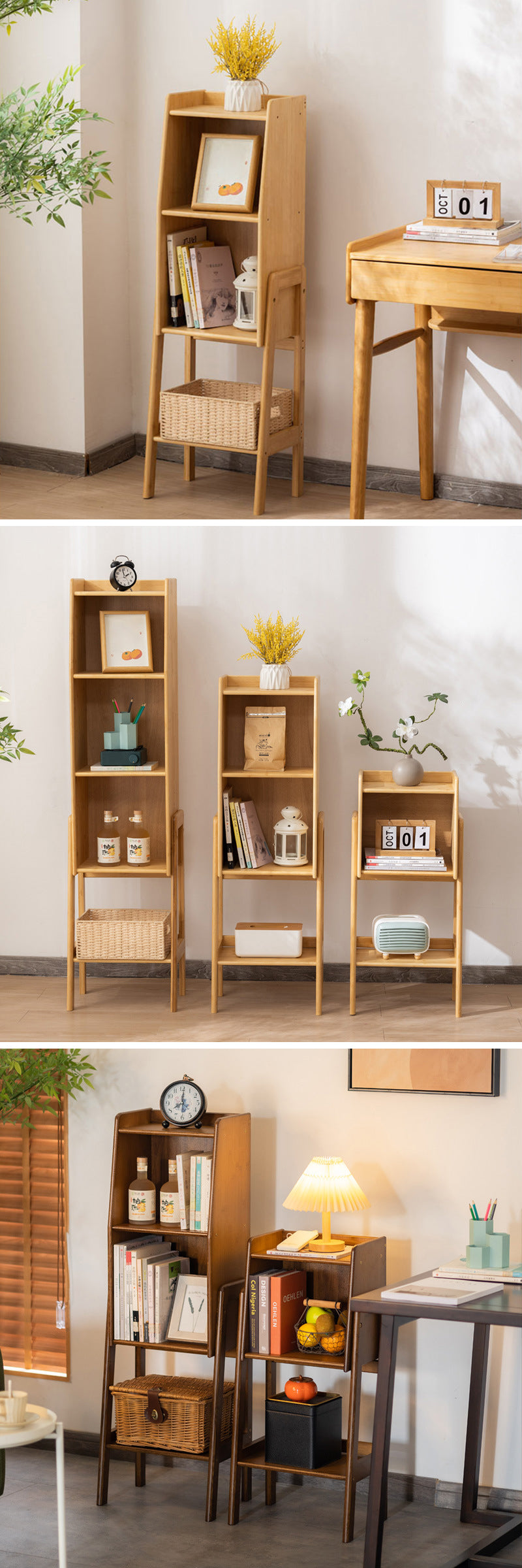 下に向かって奥行きが深くなるデザインを採用しており、収納物を安定して保持でき、特にリビングや子供部屋などで使用する際に、安心して本や小物を収納できます。