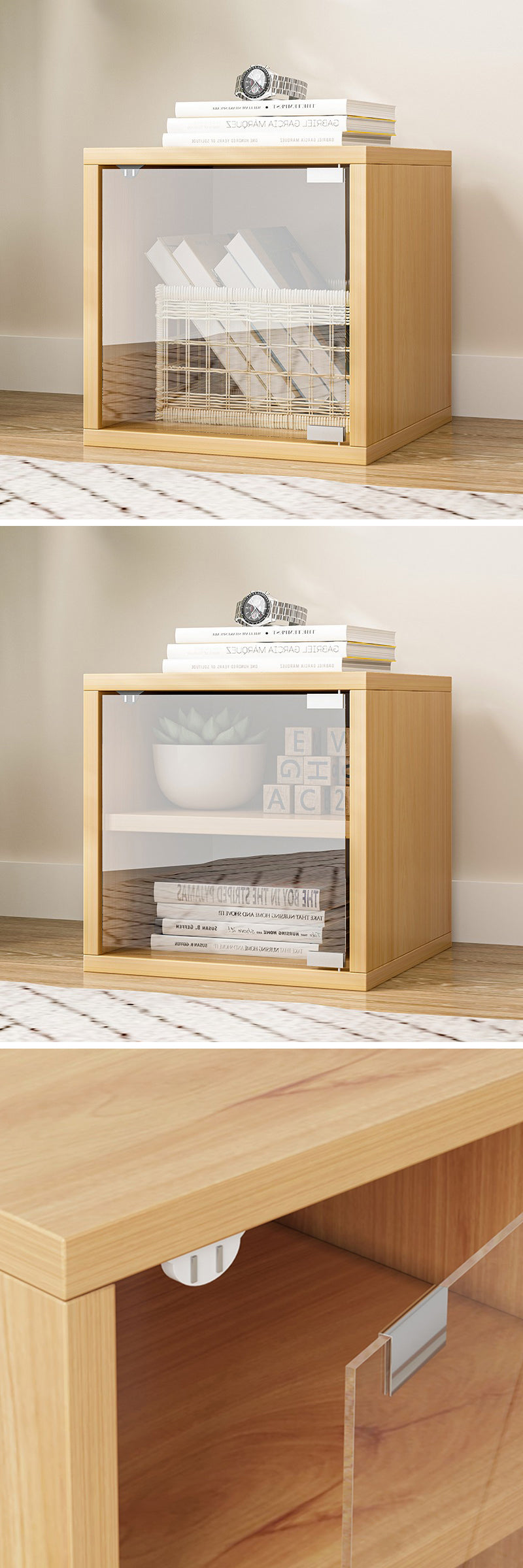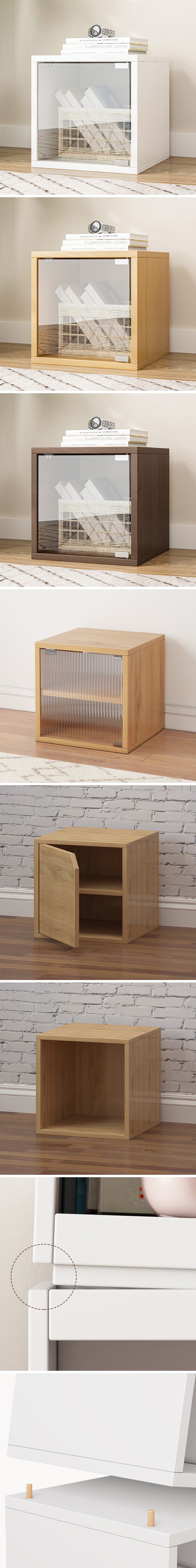 高品質なHDF高密度繊維板とガラスを使用しており、耐久性と安全性に優れています。ガラス部分は美しい仕上がりで、内部のアイテムを見せることができるため、装飾的な要素としても活躍します。シンプルながらも実用的なデザインで、書籍や雑貨、小物などを効率よく収納できます。耐荷重も十分で、重い本やアイテムも安心して置くことができます。