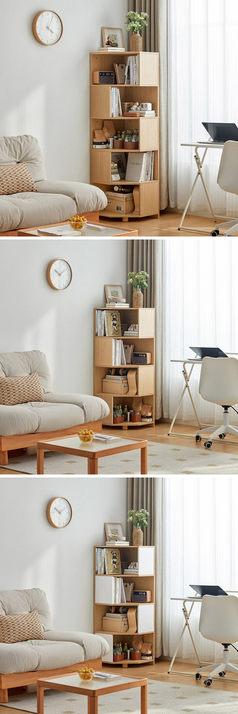 高品質なHDF高密度繊維板を使用しており、耐久性と美しさを兼ね備えています。各段の収納スペースは十分な高さと奥行きを持ち、書籍や雑貨、インテリアアイテムを効率よく収納できます。リビングルームや書斎、オフィスなど様々な場所で活躍します。