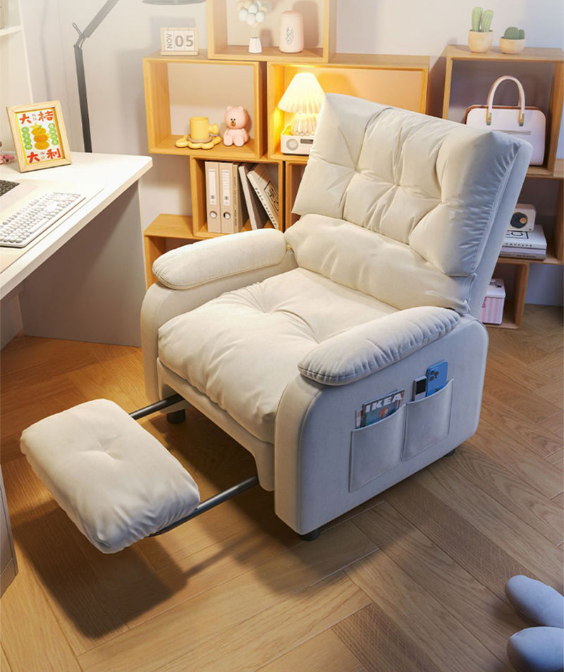 また、オットマンが付属しており、足を伸ばしてくつろぐことができます。これにより、家やオフィスなどさまざまな場所で使用でき、便利な家具として活用できます。