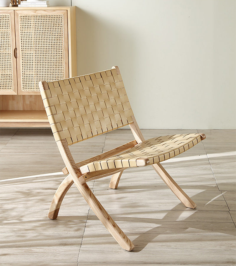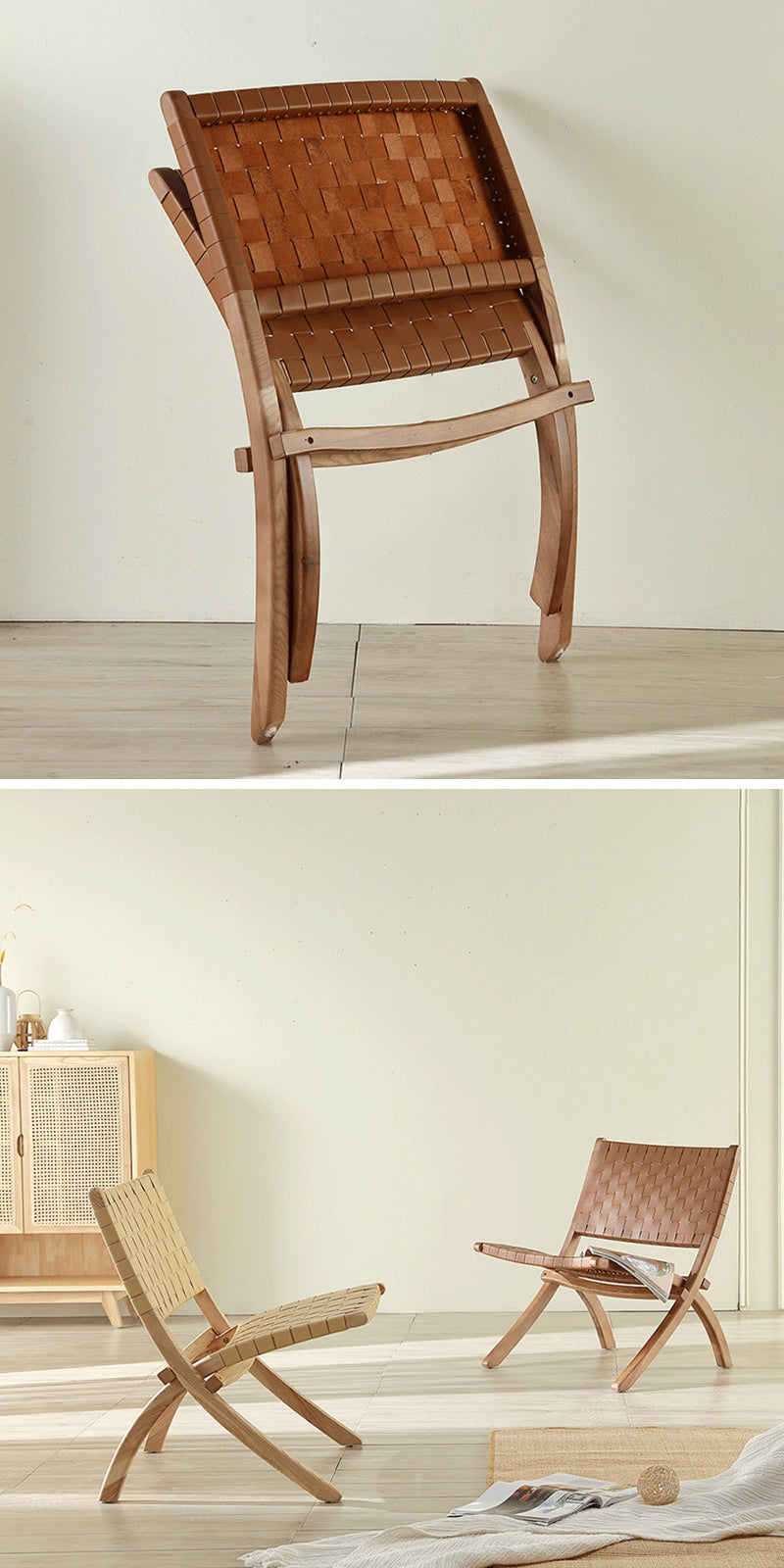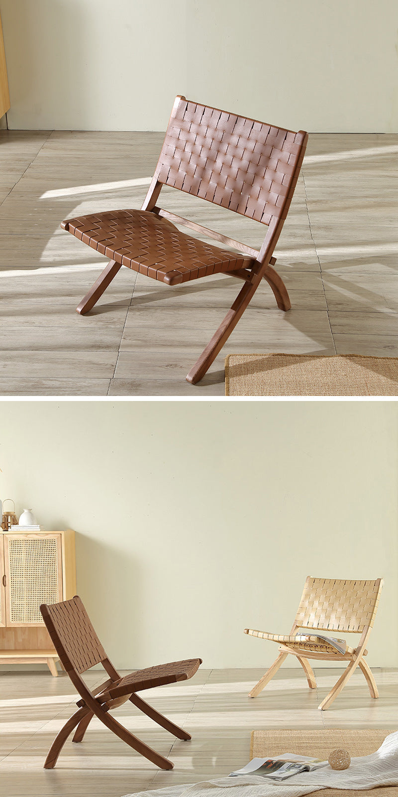 ウッドのフレームと牛革で純手編みで作られておる背もたれは、高品質な素材と職人技が使用されています。