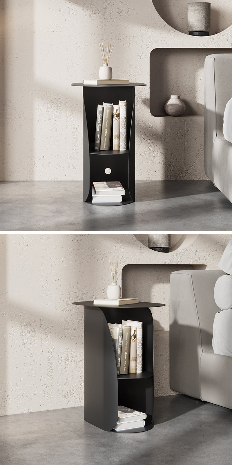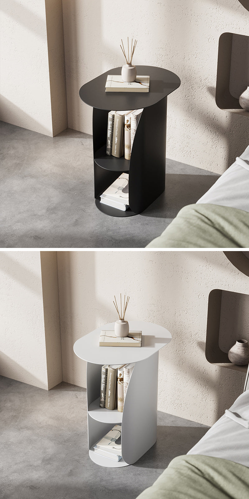 ベッドサイドに配置することで、読書灯や目覚まし時計、スマートフォン、書類などの必需品を手軽に収納できます。