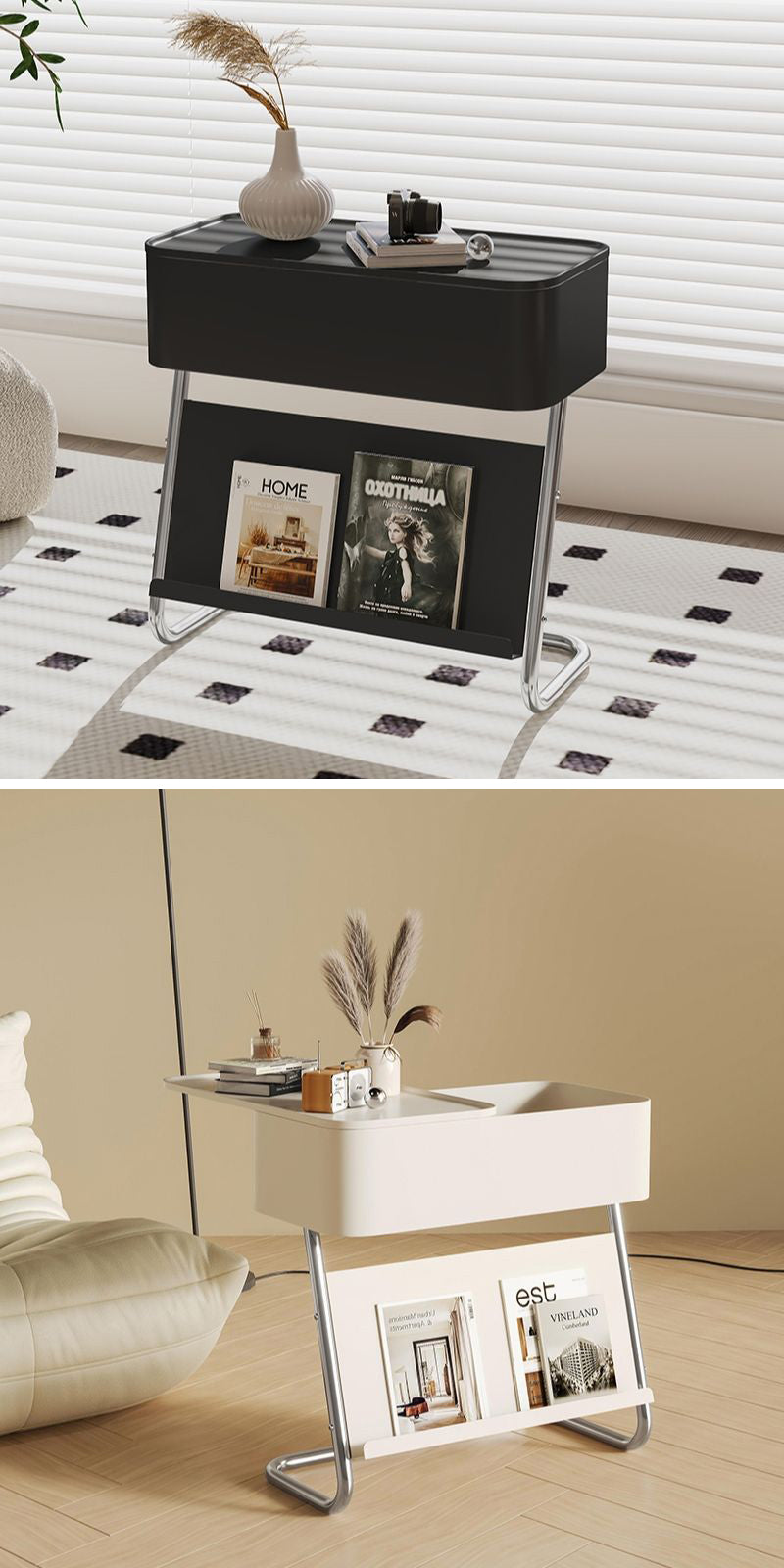 サイドテーブルはコンパクトなサイズを持ち、お部屋の配置に合わせやすいです。ソファやベッドの横に置いたり、リビングルームの隅に配置したりするのに理想的です。