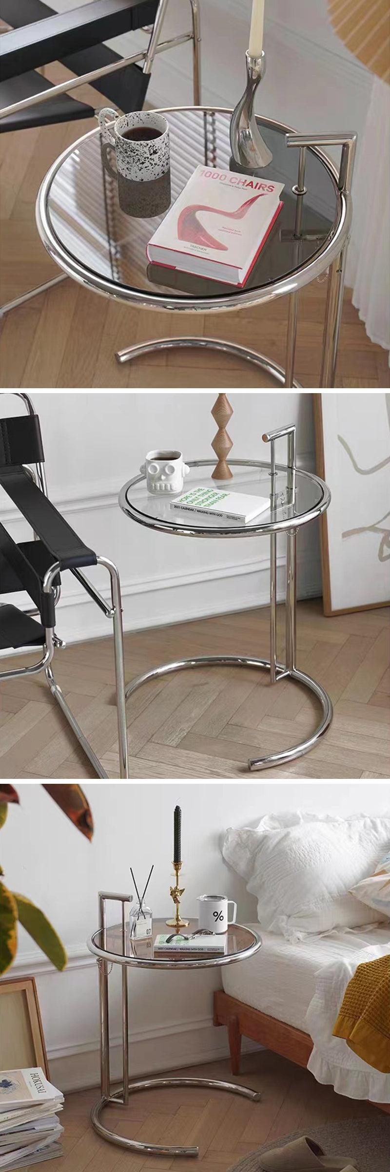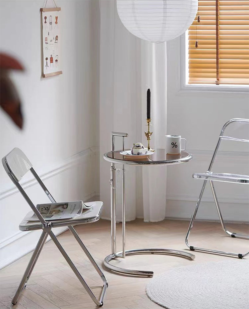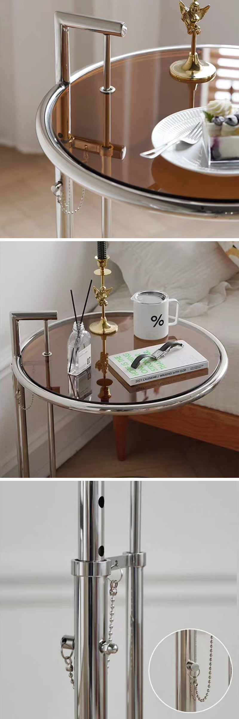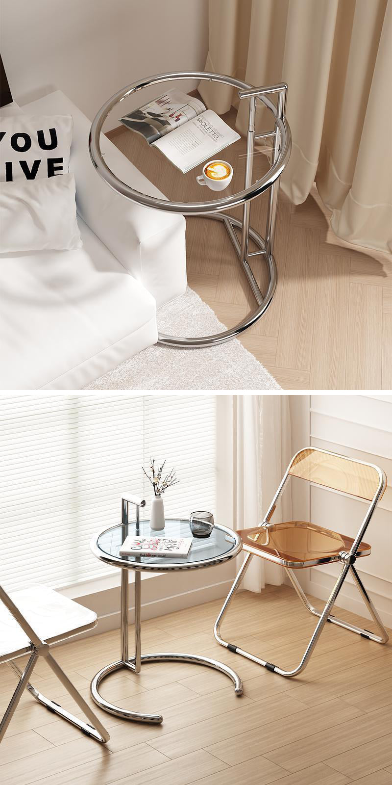 高級感とモダンなデザインが絶妙に組み合わさっています。シルバー色のフレームとガラスの組み合わせは、洗練された雰囲気を醸し出し、部屋に華やかさとスタイルをもたらします。