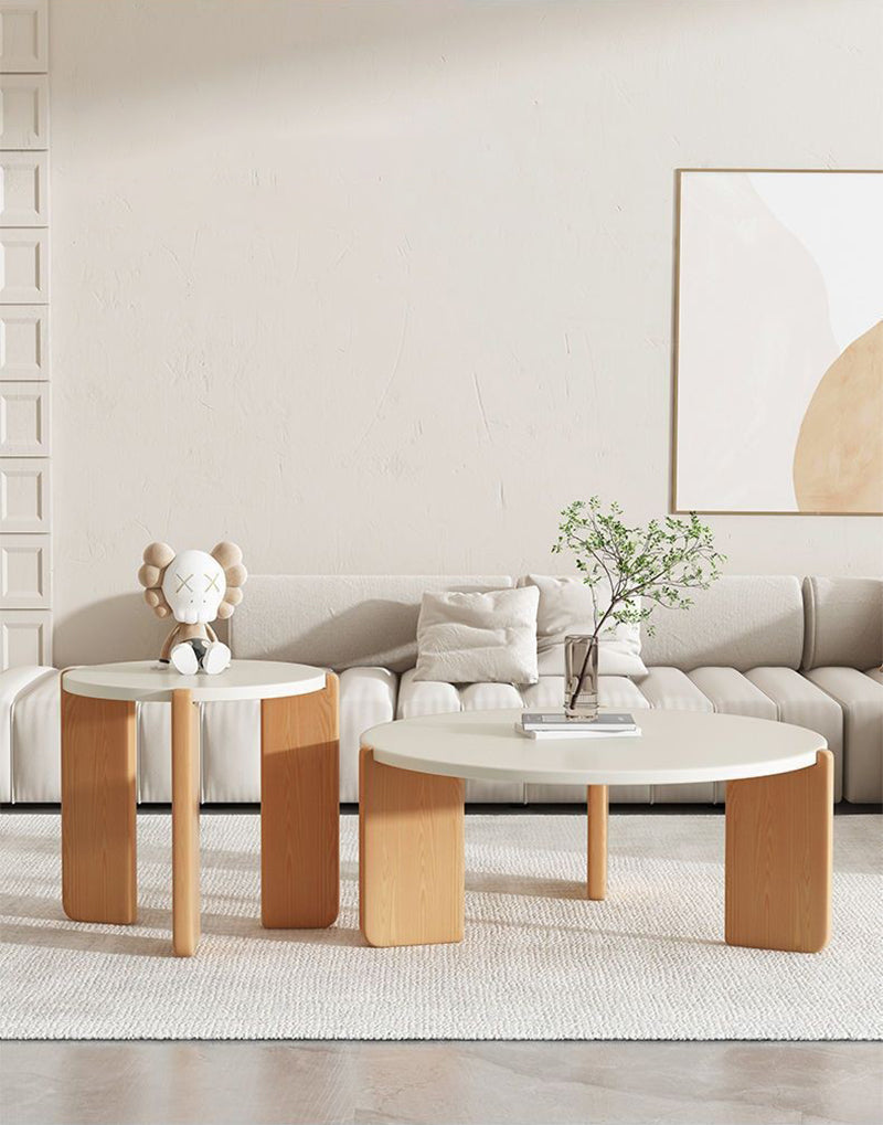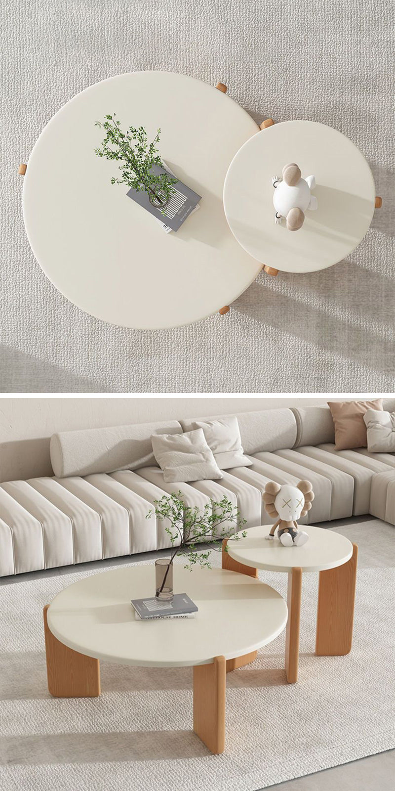 小さなサイドテーブルをソファの横に配置し、大きなローテーブルをセンターに置くなど、自由なアレンジが可能です。