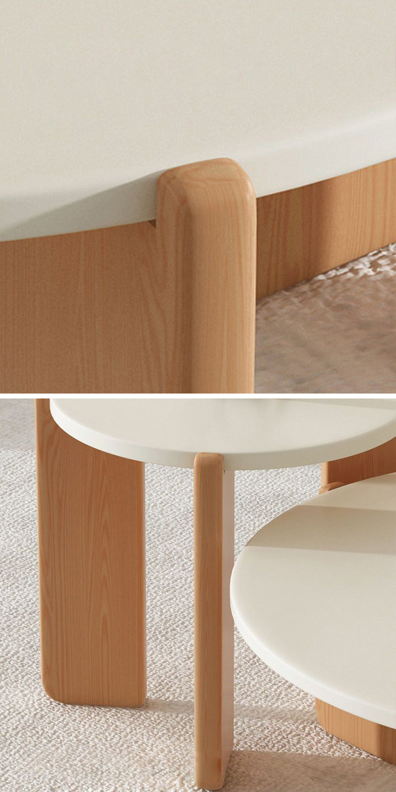 白と原木色の組み合わせは、清潔感と自然な温かみを同時に表現します。