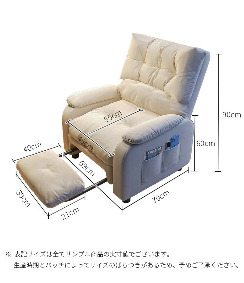 また、オットマンが付属しており、足を伸ばしてくつろぐことができます。これにより、家やオフィスなどさまざまな場所で使用でき、便利な家具として活用できます。