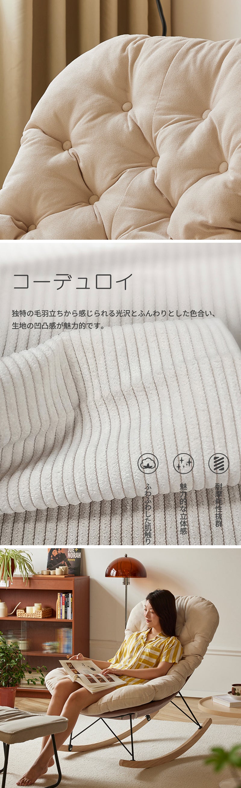 心地のよい揺れでのんびりと座れるロッキングチェア。