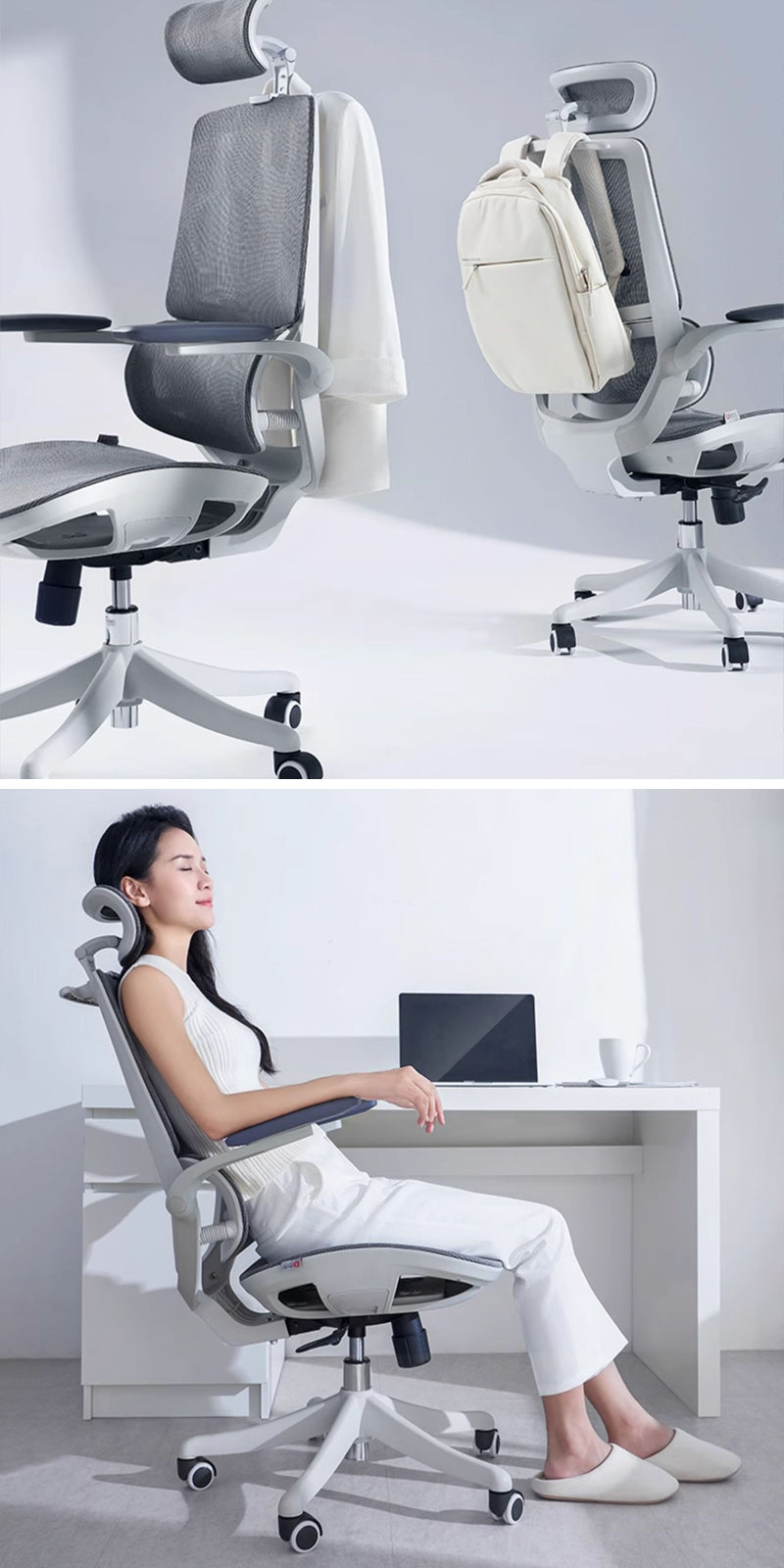 独自のダブルバックサポートが全身をしっかりと支え、長時間の使用にも適しています。