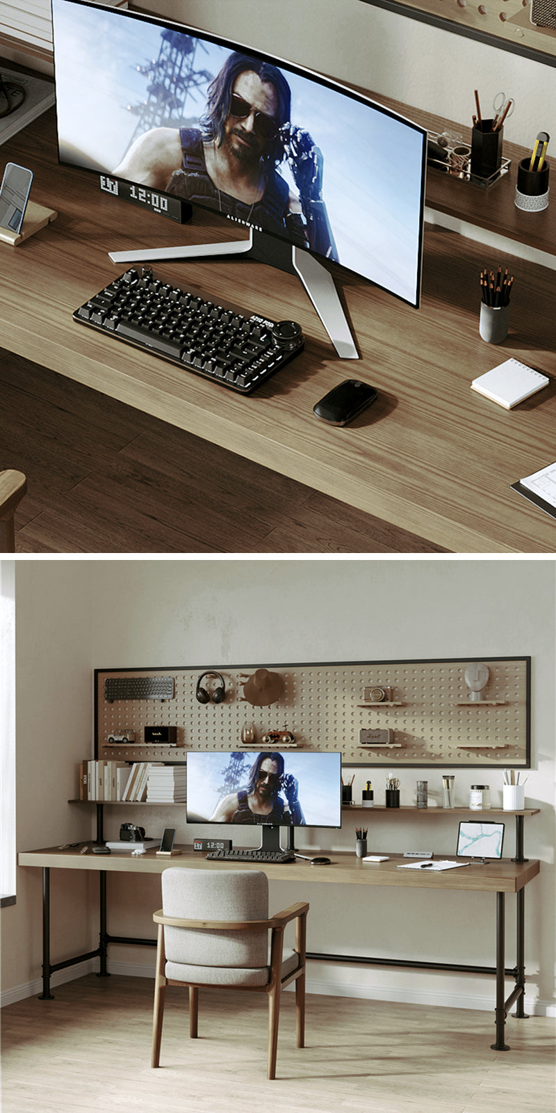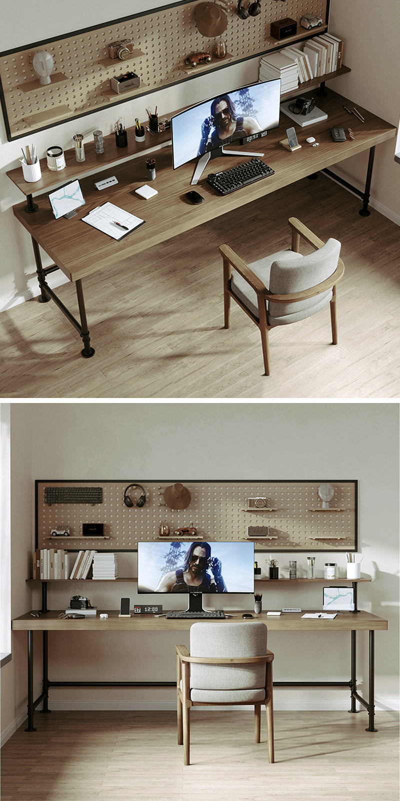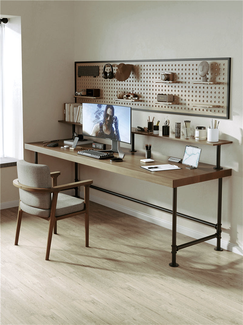 木の質感や木目が、デスクに温かみをもたらし、自然の美しさを部屋に取り入れます。