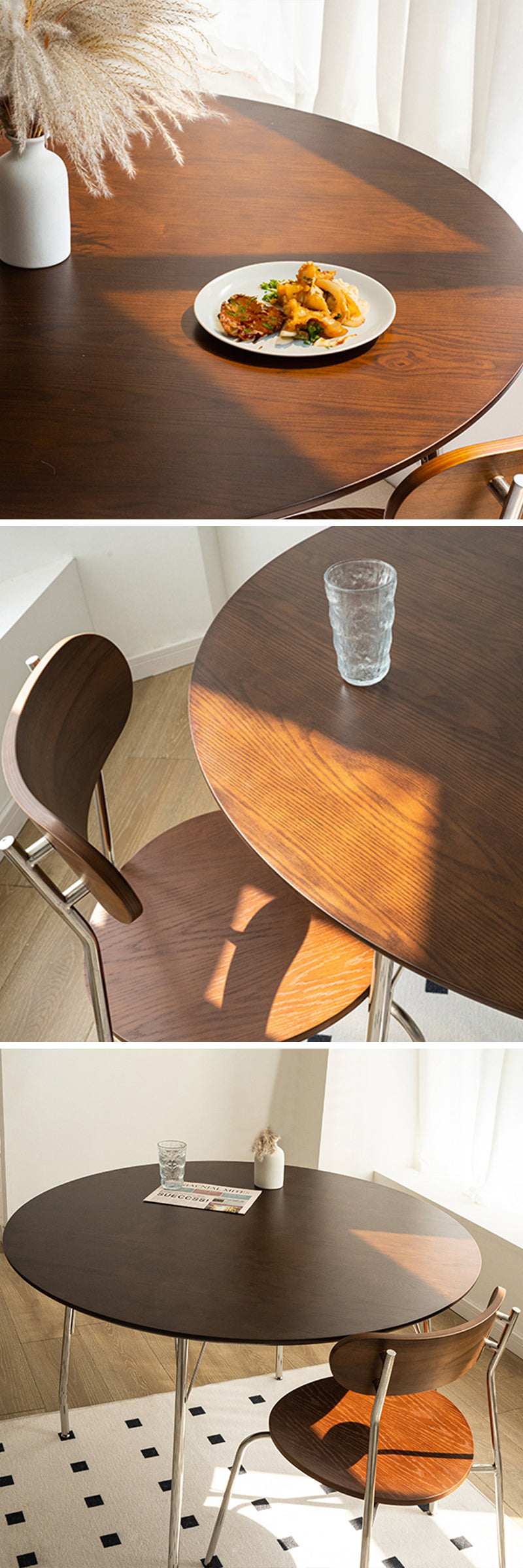 特徴的な丸いデザインが際立っており、伝統的な四角形のテーブルとは異なり、空間に新鮮な視覚的な要素をもたらします。
