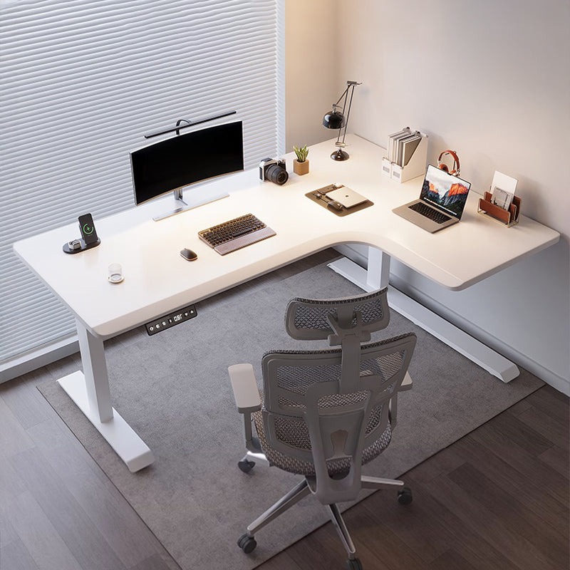 ダブルモーターにより、静音かつスムーズな昇降が可能で、座り仕事と立ち仕事を簡単に切り替えることができます。オフィスやホームオフィス、スタディルームなど、様々なシチュエーションで活躍します。L字型のデザインは、コーナースペースを有効活用でき、2人での使用も可能です。