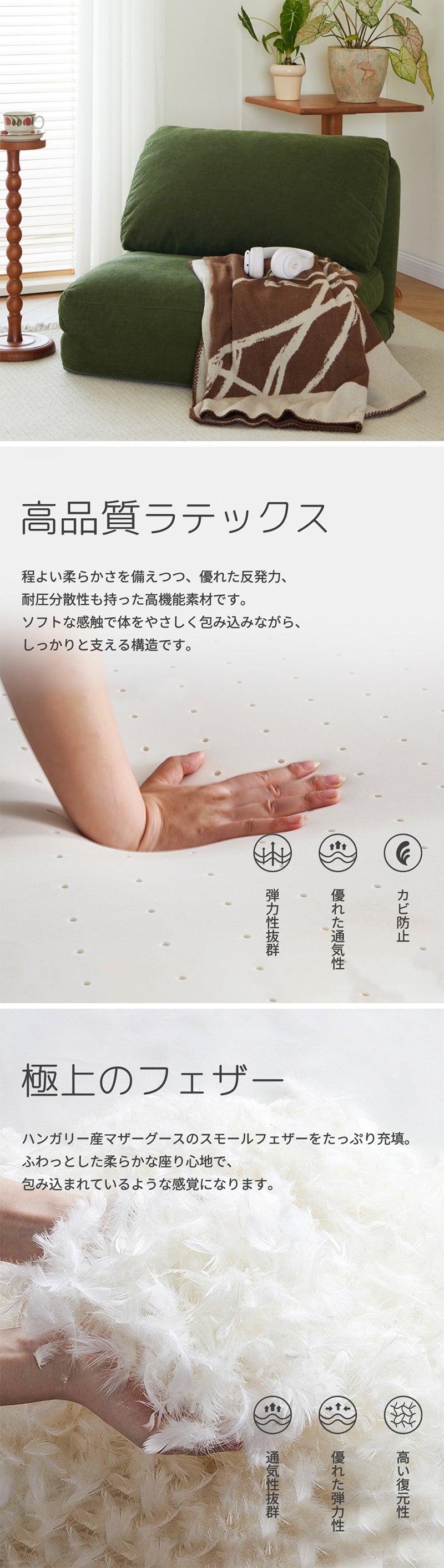 ソファ|シングル たたみスタイル シンプル