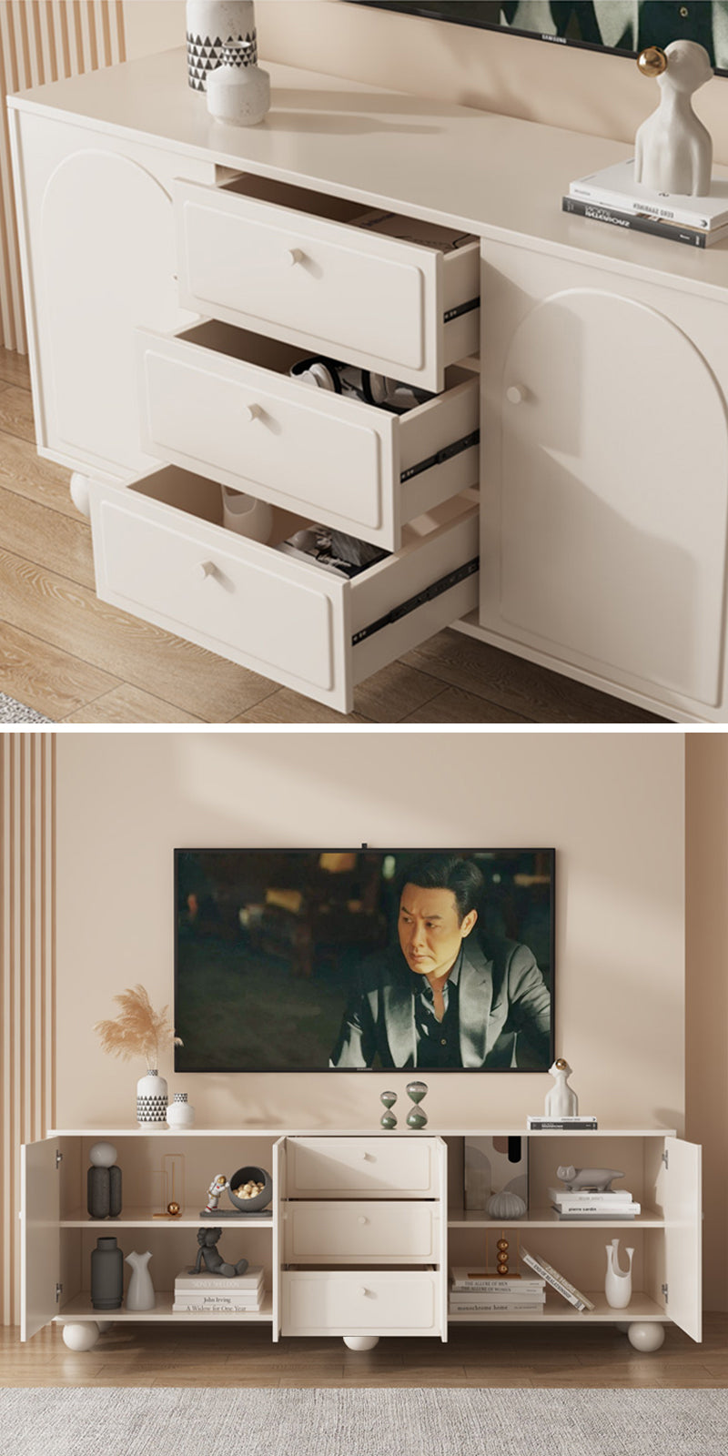 このキャビネットは内部に大容量の収納スペースを提供します。