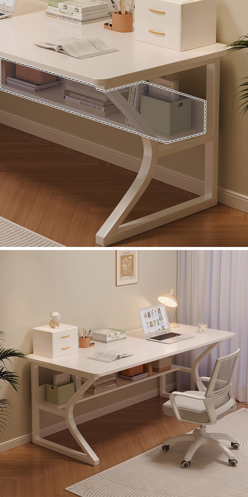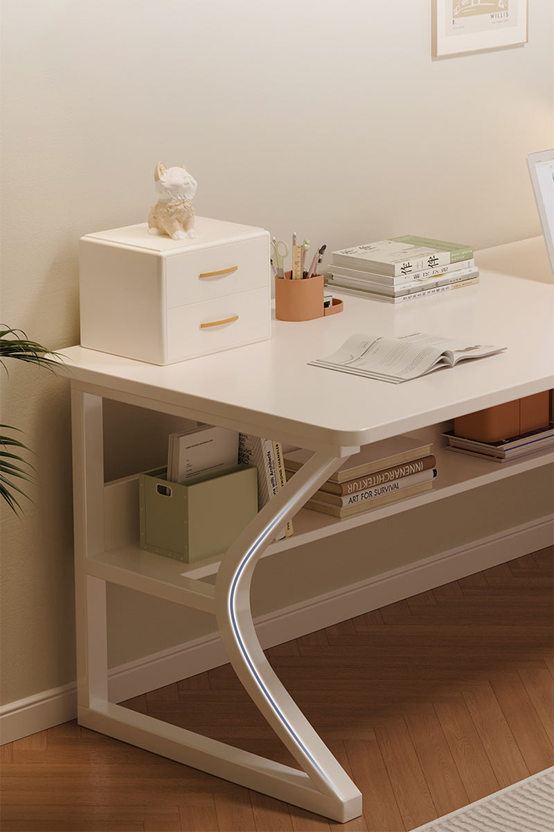 デスクには収納スペースが豊富に備わっており、文房具や書類、小物類を整理整頓するのに便利です。